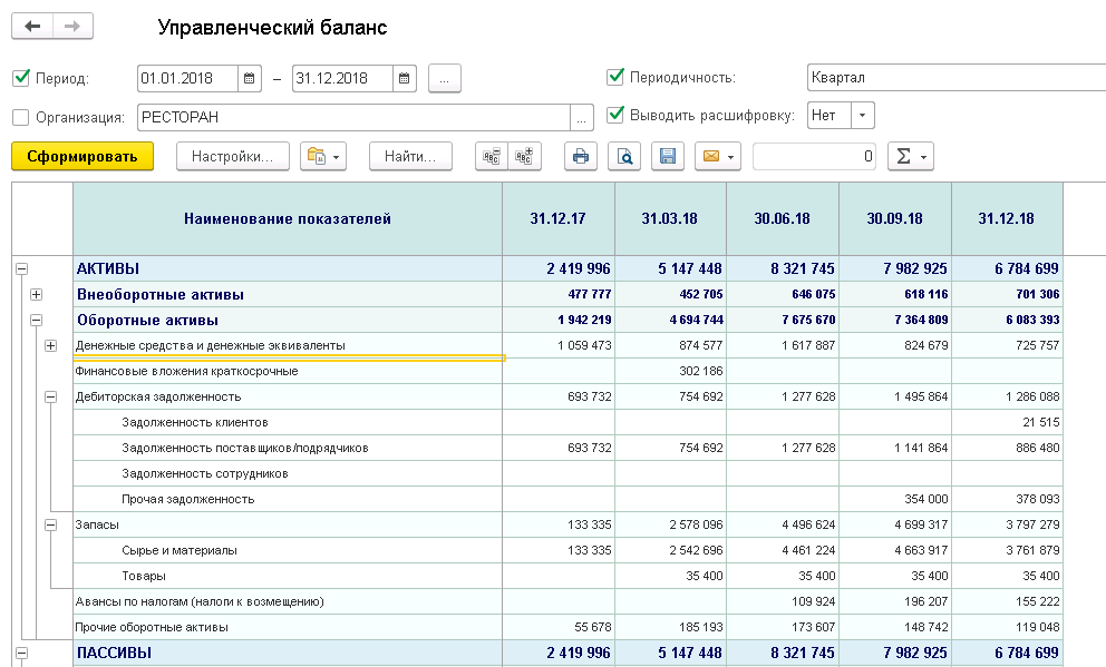 Консультации по установке и работе с отчётами, устранение ошибок, доработка отчёта "Управленческий баланс" под изменённый план счетов.